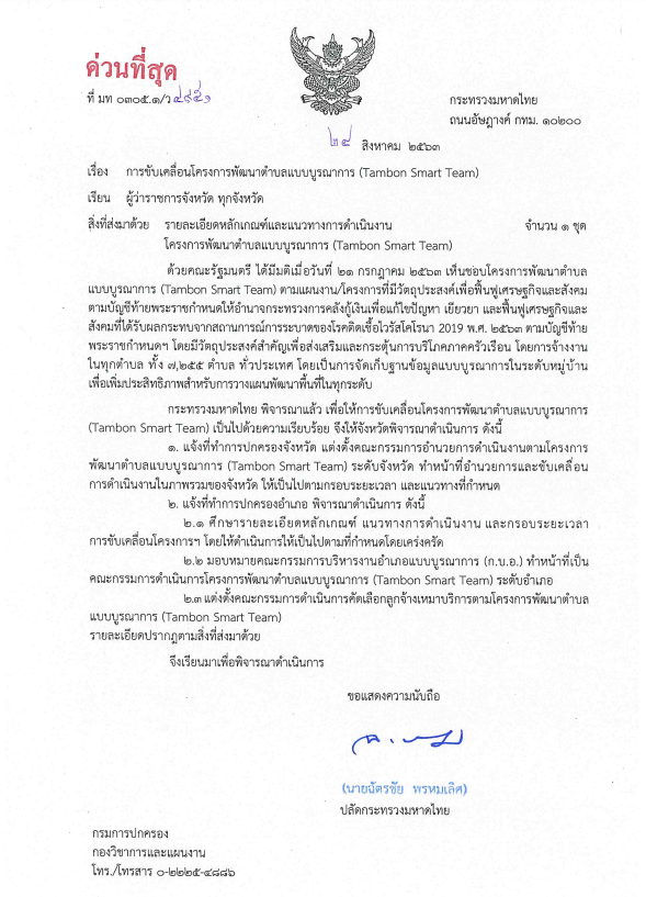 การขับเคลื่อนโครงการพัฒนาตำบลแบบบูรณาการ (Tambon Smart Team)